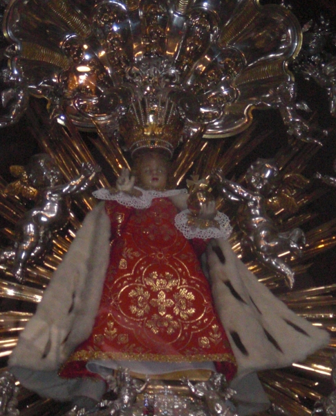 Santo Niòo Jesús de Praga proviene de Espaòa fue hecho en el siglo 16 entre Sevilla y Cordóba, se dice que es milagroso que salva la salud de la gente. Es muy importante por eso también el 26/9/2009 le trajo Papa nueva corona, ya la tiene colocada. A Praga fue traído de Las Islas Canarias - les puedo explicar toda la historía de él también tengo las fotos de los donantes.
